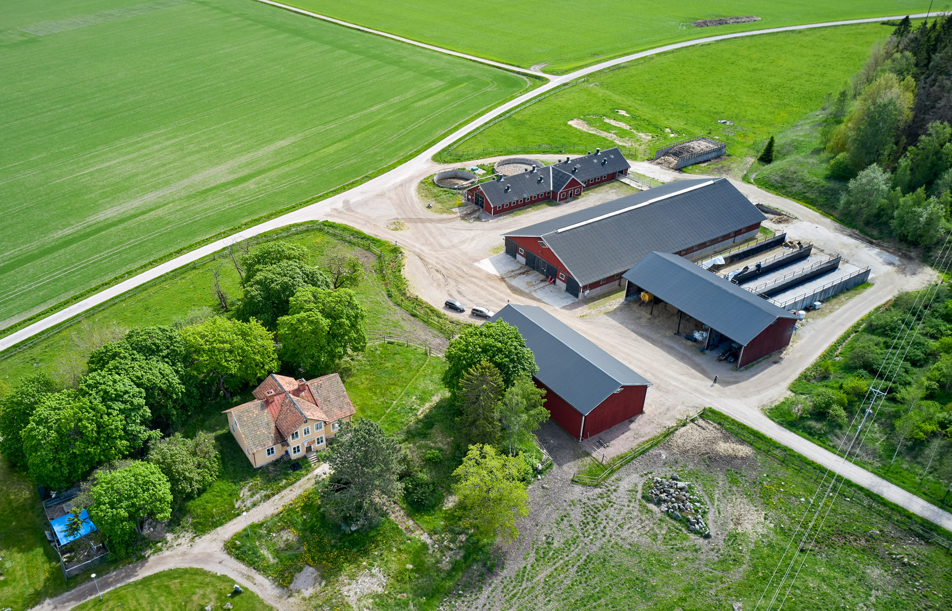 Åker, beten, skog och animaliegård med 2 ladugårdar som rymmer mer än 200 nöt. 90 st. Di-och Amkor och resterande ungnöt, kvigoroch tjurar.